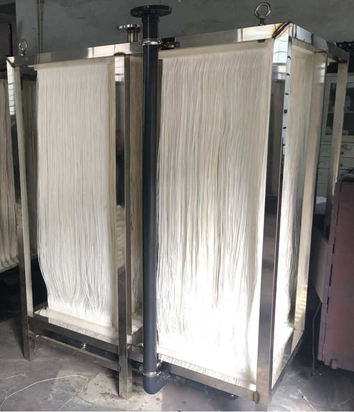 9、 膜組件設有曝氣管,對膜絲進行氣水沖刷,維護膜的通量,也可利用生化池的曝氣過程對膜纖維表面進行清洗,保持穩(wěn)定的產(chǎn)水量。